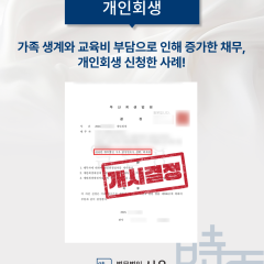 가족 생계와 교육비 부담으로 인해 증가한 채무, 개인회생 신청한 사례!