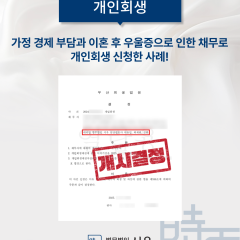 가정 경제 부담과 이혼 후 우울증으로 인한 채무로 개인회생 신청한 사례!