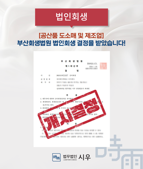 [법인회생] [공산품 도소매 및 제조업] 부산회생법원 법인파산 결정을 받았습니다!