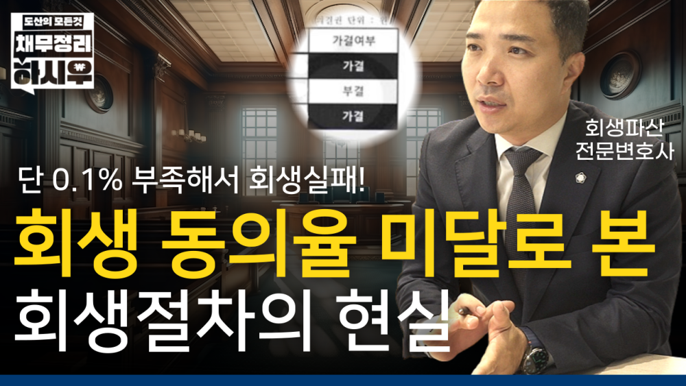 회생 동의율 미달로 본 회생절차의 현실 #부산법인회생 관련링크 https://www.youtube.com/watch?v=7DoJgz3wM9M 51회 연결 본문 회생 동의율 미달로 본 회생절차의 현실 #부산법인회생 #도산전문변호사 목록