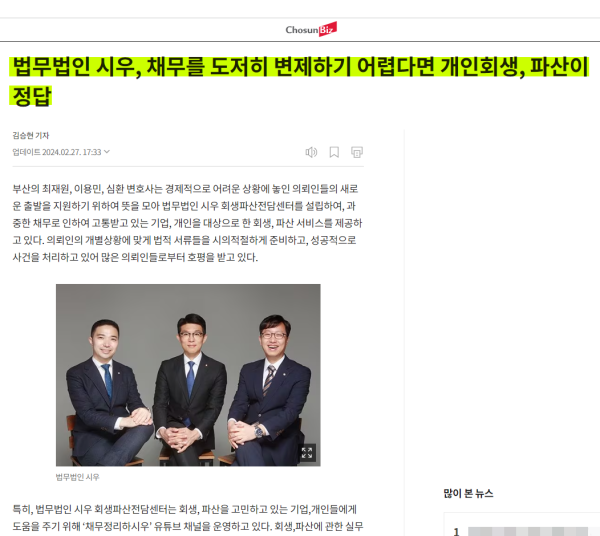 보다 자세한 사항은 법무법인 시우 부산사무소 회생파산전담팀과 유튜브 공식 채널을 통해 확인할 수 있다.