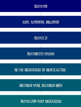 지급불능 또는 부채초과상태로 인해 법인의 회생이 어려운 경우 법인의 재산을 환가하여 채권자들에게 공정하게 분배하는 제도입니다.