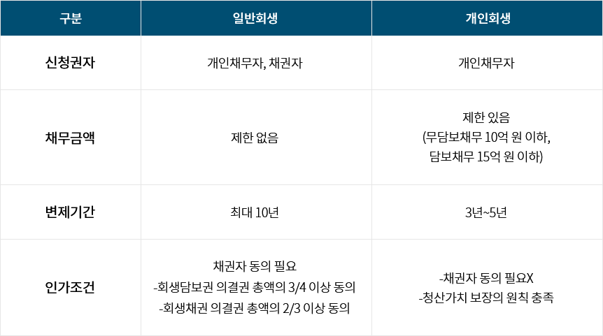 법률상 용어는 아니나 개인회생 절차와 구별을 위해 실무상 쓰는 용어로, 채무총액이 무담보채무 10억 원, 담보채무 15억 원 중 어느 하나라도 초과하여 개인회생제도를 이용할 수 없는 개인(의사, 한의사, 교사, 세무사 등 전문직) 및 개인사업자, 회생회사 관리인 등을 대상으로 하는 회생절차입니다.